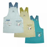 特 徴 :たすきが配色使いで、両脇が釦あきになったワーク感覚のエプロン。後ろはまるでサロペット風なデザイン。ポケットにステッチをきかせてカジュアル度up!