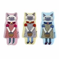 カラフルでキッチュなおめかしさんたち。厚みがあるので、お行儀良く一人で立ちます。3色並べるとこれまた可愛い♪