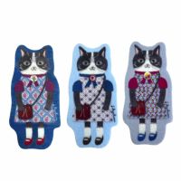 カラフルでキッチュなおめかしさんたち。厚みがあるので、お行儀良く一人で立ちます。3色並べるとこれまた可愛い♪