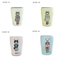 特 徴 :タンブラー全体にやわらかでレトロ感のある模様を施し、色とりどりのおめかしさん達のカラフルで手書き感のあるイラストで飾りました。冷たい飲み物を入れても結露しにくい二重構造。蓋はスライド式で蓋を外しても使え2wayでお使いいただけます。