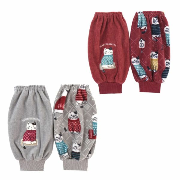 4. アームカバー おしゃれ DIY 肘当て 家事 フリース ねこぜがわさん 袖口リブアームカバー 24-7619 クスグルジャパン アームカバー あたたかい おしゃれ