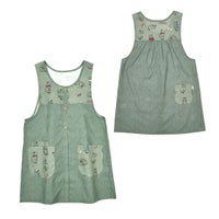 特 徴 :クスグルキャラクター達のカラフルなプリントと先染めを組み合わせたエプロンです。