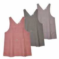 特 徴 :フロント部分のたすきがダブルになったデザイン。たっぷりなポケットとアシメントリーなスリットが特徴のエプロンです。後ろはすっぽりヒップがかくれます。後:釦あき。