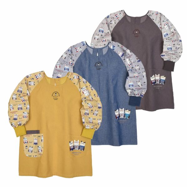 特 徴 :ラグラン袖がカジュアルなカッポウ。袖口もリブ仕様なのでお家着感覚で着ることができます。
