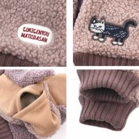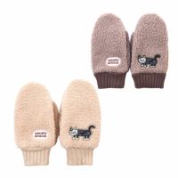 ミトンタイプのふっくら手袋。指先の部分が開いて指が出せる2way仕様になっているので、携帯などの操作が便利です。手首部分はリブ編みで冷たい空気をシャットアウト。親指は配色使いのデザイン。寒くなるのが待ち遠しくなる手袋です。マチルダさんのアップリケ刺しゅうも一緒にあたためてくれます。
