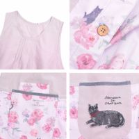 特 徴 :透明感のあるやさしいくすみカラーの水彩風ローズプリントが爽やかな雰囲気。プリント生地にストライプ模様の織りが入っています。ふんわりしたムッシュ君の毛足生地アップリケをあしらいました。