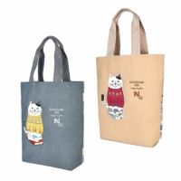 特 徴 :お馴染みのトートバッグです。前側に大きなねこぜがわさんのアップリケがついていて、後ろ側のプリントはにぎやかです。バッグ口/マグネット釦あき。