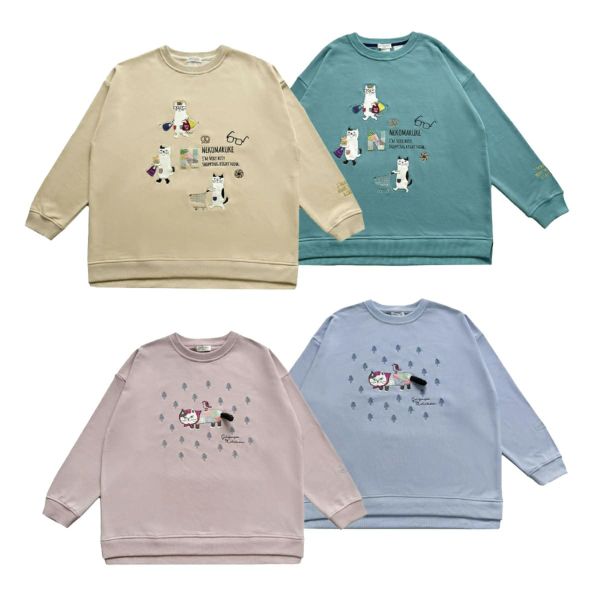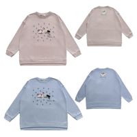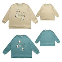 ミニ裏毛素材のゆったりシルエット。袖口はあえてあまり絞らず、特に裾のリブには程よいゆとりがあるのでヒップ周りを拾わないデザイン。着丈に前後差をつけたヘムラインと控えめなスリット。クスグルキャラクターたちの手の込んだ刺繍やプリント。片袖口のワンポイントの刺繍にも注目。クスグルならではの遊び心がある仕上がりです。