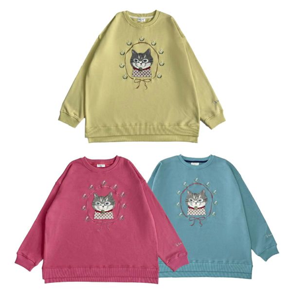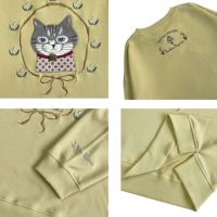 ミニ裏毛素材のゆったりシルエット。袖口はあえてあまり絞らず、特に裾のリブには程よいゆとりがあるのでヒップ周りを拾わないデザイン。着丈に前後差をつけたヘムラインと控えめなスリット。クスグルキャラクターたちの手の込んだ刺繍やプリント。片袖口のワンポイントの刺繍にも注目。クスグルならではの遊び心がある仕上がりです。