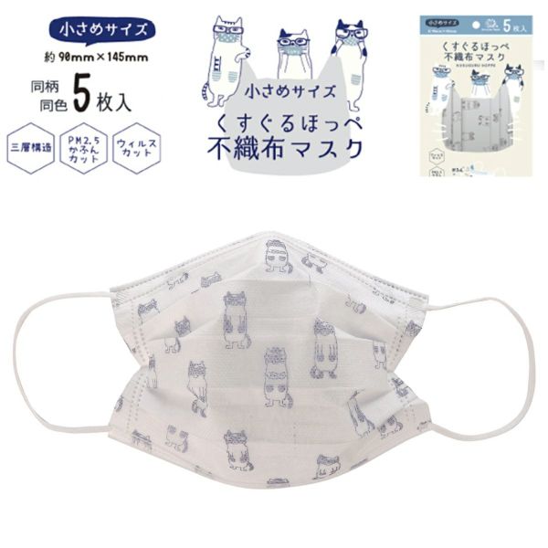 品 名 :くすぐるほっぺ不織布マスク ネコまるけ柄(小さめサイズ)