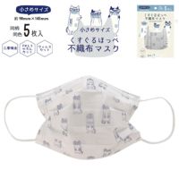 不織布マスク 小さめサイズ ねこまるけ柄 21-2200 #2/BL クスグルジャパン 21年vol.3 小さめ 柄入り 息らく 通気性 優良 三層構造 5枚入り