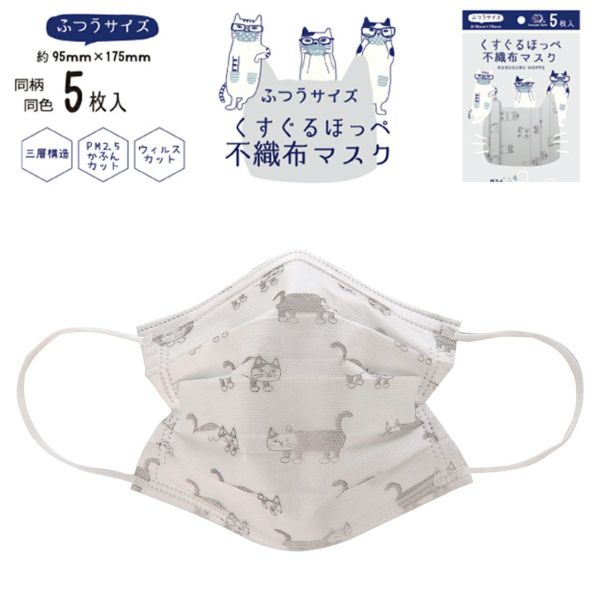 不織布マスク ふつうサイズ マチルダさん柄 21-2204 #1/GY クスグルジャパン 21年vol.3 ふつうサイズ 柄入り 息らく 通気性 優良 三層構造 5枚入り