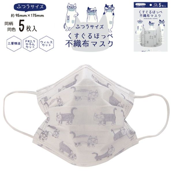 不織布マスク ふつうサイズ マチルダさん柄 21-2204 #2/BL クスグルジャパン 21年vol.3 ふつうサイズ 柄入り 息らく 通気性 優良 三層構造 5枚入り