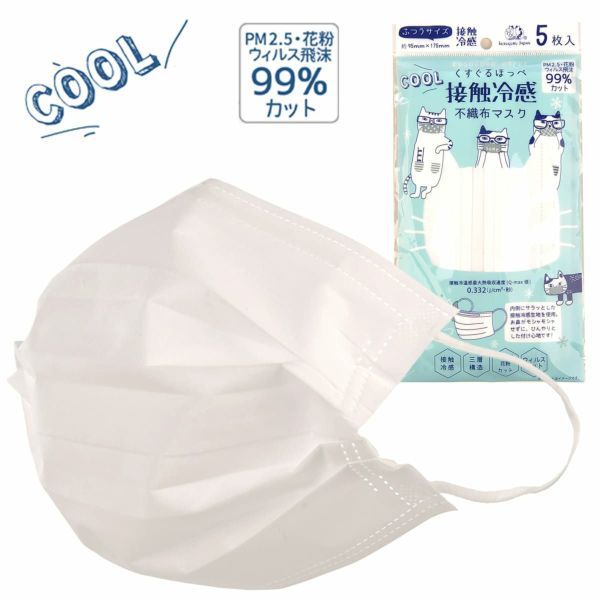 ●冷感接触・三層構造・PM2.5花粉カット・ウィルスカット。PM2.5 花粉 ウイルス飛沫99%カット 1袋5枚入りです。