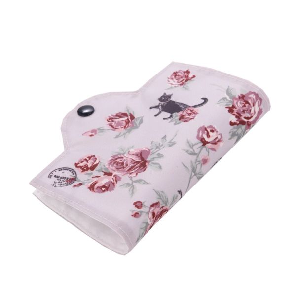 備 考 :食事の時に....。人前でマスクを外した時に......。マスクの持ち運びにシワにならずにスッキリ収納できます。マスクの出し入れもスムーズです。衛生的で使いやすいマスクカバーですよ。ロマンティックなローズと黒ねこムッシュ君のコラボプリント入りです。