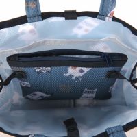 総柄プリントのバッグには、内側にメッシュのポケットや取り外しができるミニポーチが付いています。ロッカーキーや貴重品入れとしても使えます。