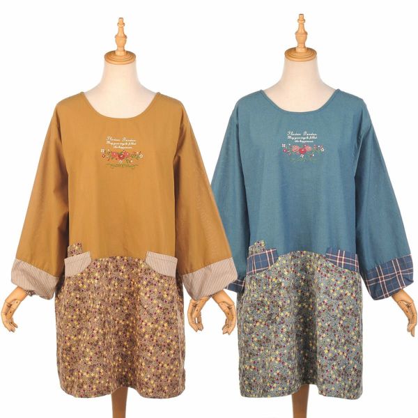 特 徴 :花柄、チェック、ストライプなど、色とりどりの柄と素材を丁寧に組み合わせた手の込んだパッチワークエプロンたち。