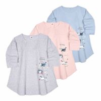 特 徴 :腰回りが隠れる長めのAラインシルエットのTシャツです。七分袖なので、秋まで着ていただけます。
