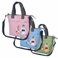 カラフルで丈夫なキャンバス生地を使用し、アニマルモードのシナモンの図案がついたバッグです。