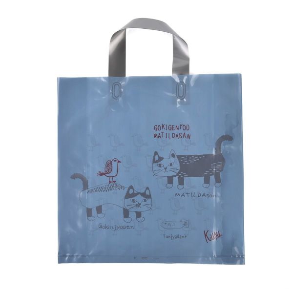 テープ ハンドル バッグ L サイズ 8枚入り マチルダさん柄 縦32X幅32X片側マチ5cm 23-6603 クスグルジャパン ネコ柄がかわいいバッグ 小物収納