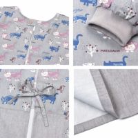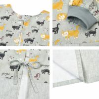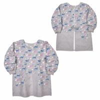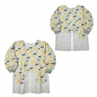特 徴 :プリントをメインに無地と切り替えた賑やかなカッポウ。袖口は、リブ使いです。