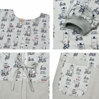 特 徴 :プリントをメインに無地と切り替えた賑やかなカッポウ。袖口は、リブ使いです。