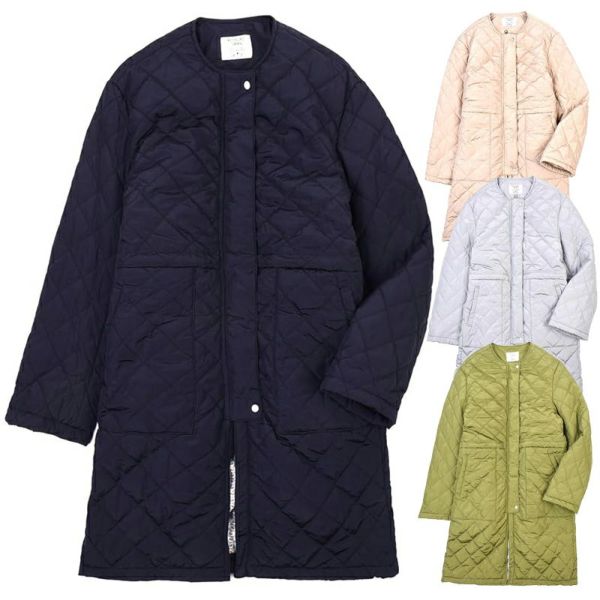艶感のあるパール調の上品でマットな色合い。ワッシャー加工のこなれた風合い。あたたかな中綿でキルティング加工しました。ややゆとりのあるシルエットで、厚手のニットなどインナーを選ばず合わせることができるデザイン。ノーカラーで首回りがスッキリしているからタートルニットやボリュームストールとの相性が◎。ロング丈で暖かさもあるので、デイリーに着回ししたいアイテムです。