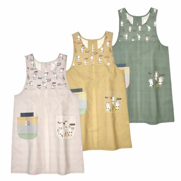 品 名 :ネコまるけ ロングタイプ 釦リボンあきエプロン