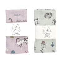 特 徴 :柔らかな二重のガーゼ素材にクスグルのキャラクターをプリント。