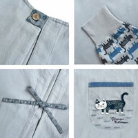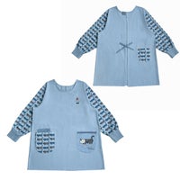 コメント:袖にモノグラム風プリントを使用したカジュアルなカッポウ。袖口もリブ仕様なのでお家着感覚で着ることができます。
