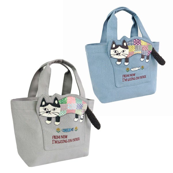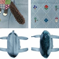 コメント:クスグルの人気商品ハミポケバッグ。アップリケのご近所さんはカラフルなパッチワークの装い。後ろ側は総柄プリントでイメージががらりと変わります。