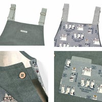 特 徴 :クスグルキャラクター達のカラフルなプリントと先染めを組み合わせたエプロンです。