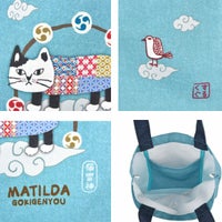 特 徴 :和風テイストのクスグルキャラクター達。表面はデニムのフェイクプリント仕上げ。しっかりしたキャンバス素材使用で、A4サイズの書類がすっぽり入るトートバッグです。便利な内ポケット付きです。