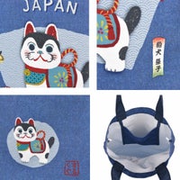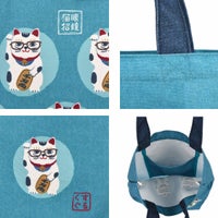 特 徴 :和風テイストのクスグルキャラクター達。表面はデニムのフェイクプリント仕上げ。しっかりしたキャンバス素材使用で、A4サイズの書類がすっぽり入るトートバッグです。便利な内ポケット付きです。