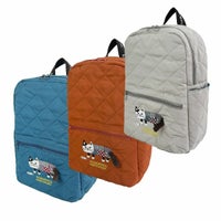 コメント:フロントに大き目のポケットと両サイドには折り畳み傘やタンブラー等が入るポケット。背あて部分やたすきにクッションを施した使いやすいリュックです。
