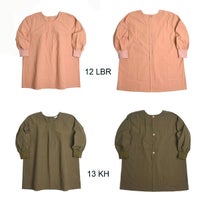 サイズ :着丈81cm、身幅61cm+タック分、袖丈54cm 後:釦あき