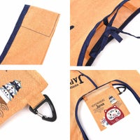まるで織物のようなイメージのエコバッグたち。ポリエステル生地にプリントで先染めを表現しました。持ち手部分が幅広なので、荷物をたくさん入れても手への負担が少ないです。バッグ等に吊り下げられて携帯に便利なカラビナが付いています。マチを広げた状態で約20cm。内ポケット(タテ約12.5cm ヨコ約13cm)に折り畳んで収納できます。