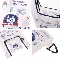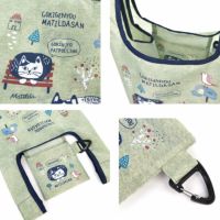 まるで織物のようなイメージのエコバッグたち。ポリエステル生地にプリントで先染めを表現しました。マチが広めなので、コンビニのお弁当やパックのお惣菜などを平らに持ち運べます。バッグ等に吊り下げられて携帯に便利なカラビナが付いています。マチを広げた状態で約18cm。内ポケット(タテ約11cm X ヨコ約10.5cm)に折り畳んで収納できます。