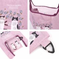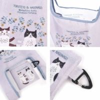 まるで織物のようなイメージのエコバッグたち。ポリエステル生地にプリントで先染めを表現しました。マチが広めなので、コンビニのお弁当やパックのお惣菜などを平らに持ち運べます。バッグ等に吊り下げられて携帯に便利なカラビナが付いています。マチを広げた状態で約18cm。内ポケット(タテ約11cm X ヨコ約10.5cm)に折り畳んで収納できます。