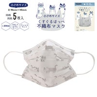4. 50%OFF 不織布マスク 小さめサイズ マチルダさん柄 21-2201 #1/GY クスグルジャパン 21年vol.3 小さめ 柄入り 息らく 通気性 優良 三層構造 5枚入り