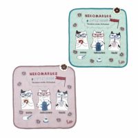 ガーゼパイルハンカチ ハンカチタオル カフェネコまるけ柄 ハンカチ 23-6705 #1/MC #2/GR クスグルジャパン ハンカチ かわいい プレゼント