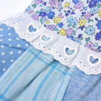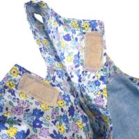 花柄柄のパッチワークエプロンです。フロントにポケットが付き、胸にリボンがついてかわいいですね。後:マジックテープあき。