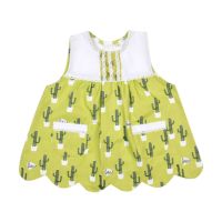 サボテンのイラストが総柄で入ったプリントエプロンです。フロントに2つのにポケットが付いていてかわいいですね。後:マジックテープあき。