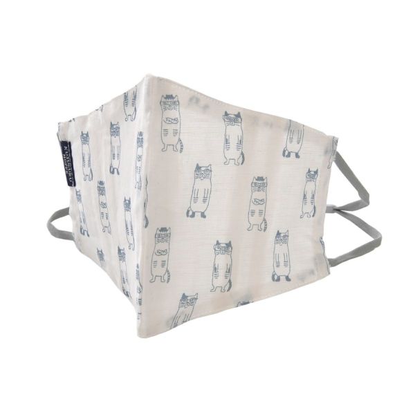 洗える布製マスク ネコまるけ柄 立体マスク 21-1001 #1 WH 大人サイズ くすぐるほっぺ クスグルジャパン