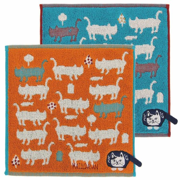 マチルダさん柄 クスグルタオルハンカチ 22-4015 #1/OR #2/BL クスグルジャパン カラフルな配色 刺しゅう ハンカチ