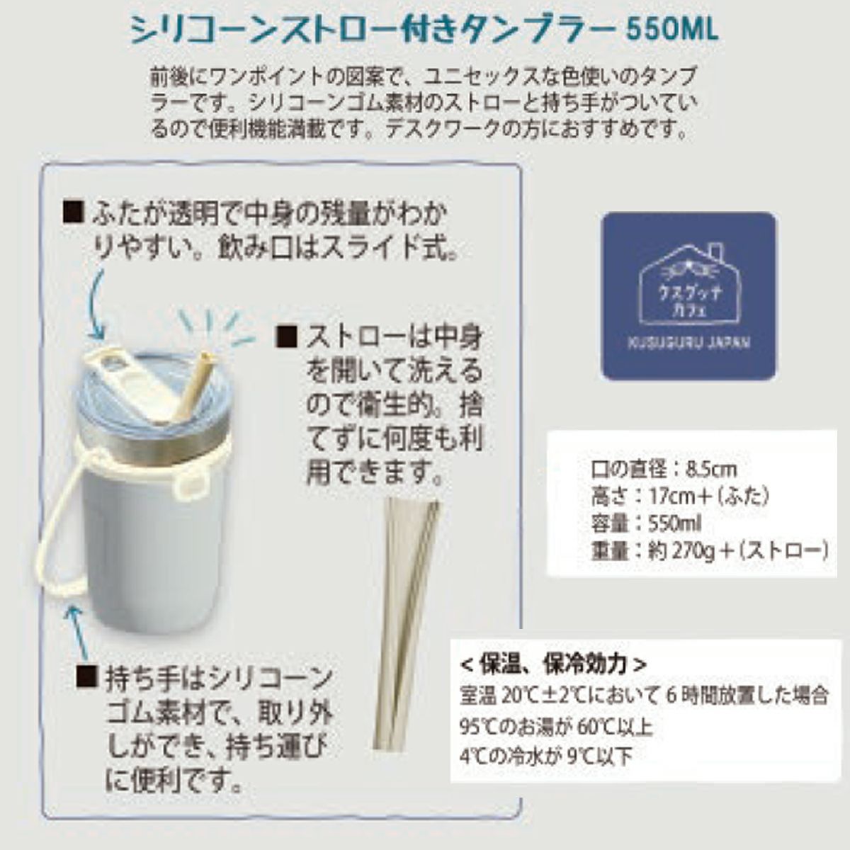 他の画像を見る クスグルジャパン 水筒 蓋付き 保温 保冷効力 ステンレス タンブラー 550ml おしゃれ クスグッテカフェタンブラー マチルダさん柄 23-6711 #1/BE 2/BG クスグルジャパン 水筒 蓋付き 保温 保冷効力 ステンレス NEW 定番 通常販売価格 ¥ 2,750 税込 会員価格あり カートに入れる お気に入りに登録する