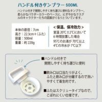 サイズ :口の直径 7cm、高さ22.3cm+(ふた)、容量:500ml、重量:約220g