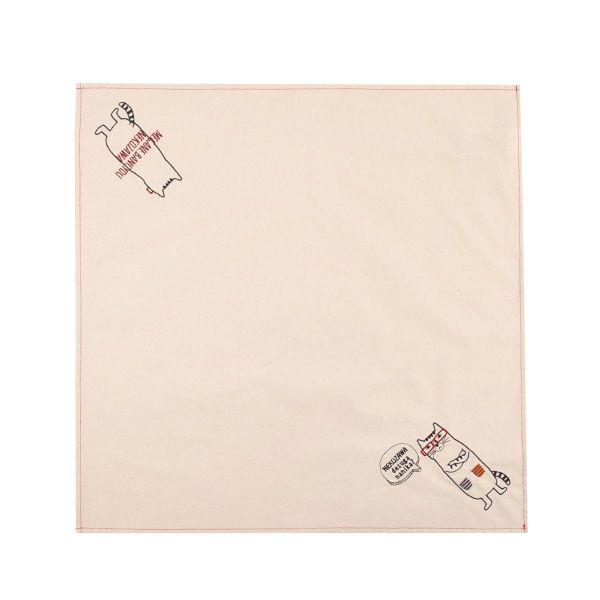 特 徴 :美味しいお弁当を可愛く包むランチクロス。是非ランチバッグとおそろいでどうぞ。ナチュラルな生成りのシーチング素材に、ネコザワさんの刺しゅうを施しました。