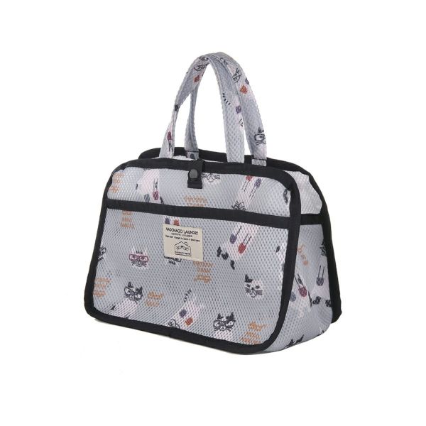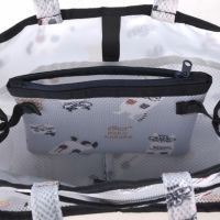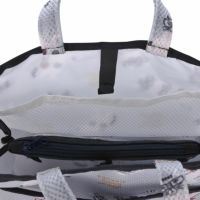 総柄プリントのバッグには、内側にメッシュのポケットや取り外しができるミニポーチが付いています。ロッカーキーや貴重品入れとしても使えます。