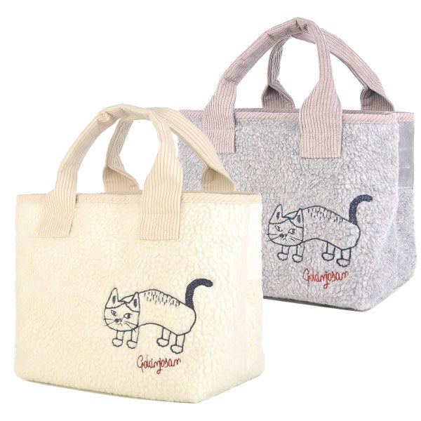 4. 40%OFF トートバッグ あたたかい おしゃれ かわいい ネコ 雑貨 異素材パチワーク 仕切りトートバッグSサイズ 22-5703 #1/IV #2/GY クスグルジャパン